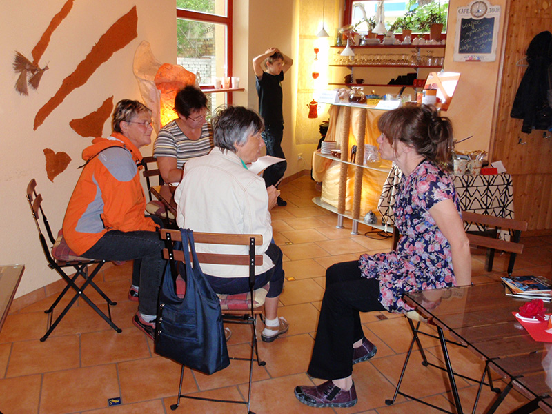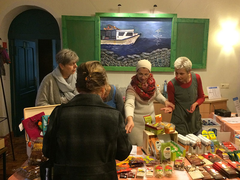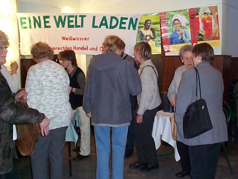 Basar im Volkshaus 2004 bei einem Dia-Vortrag. Mit Teeverkostung.