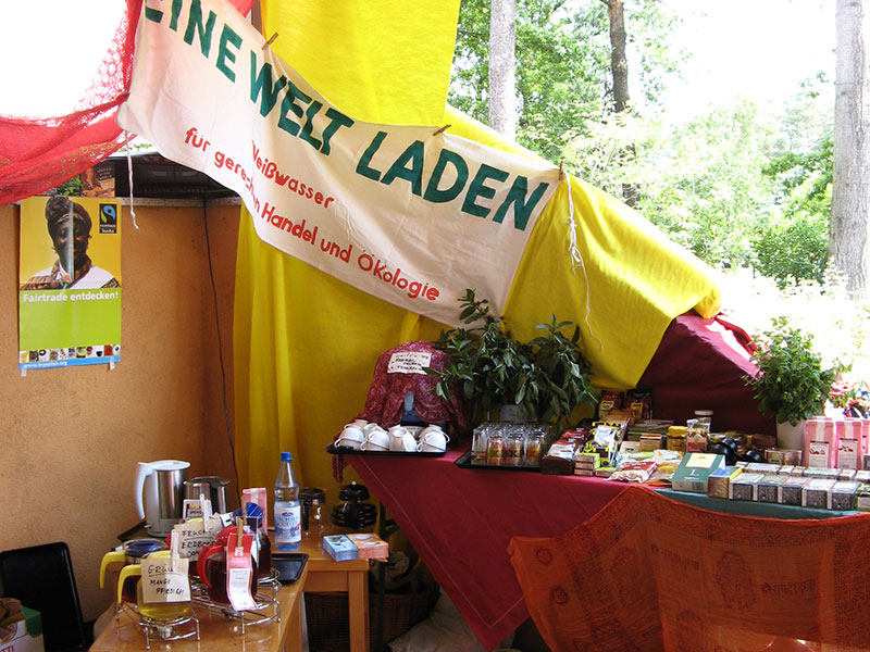 Kirchentag 2007 in Schleife. Unser Stand mit Teeverkostungs-Utensilien.