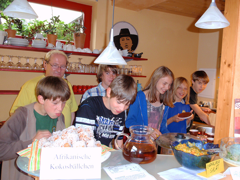 Tag für Afrika 2011. Speisen und Getränke haben die Lernenden zubereitet.