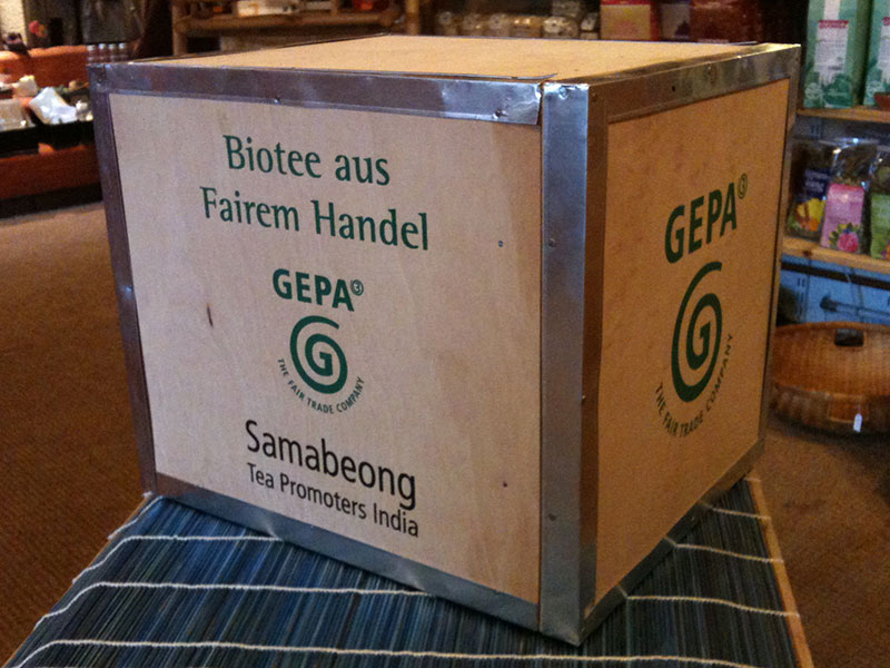 Unsere kleine Teekiste. Leider leer, aber dekorativ.
