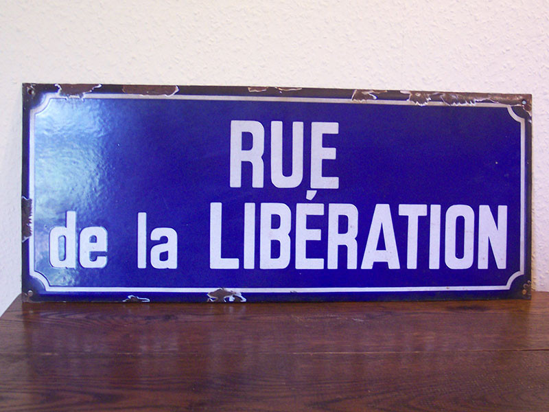 Rue de la LIBÉRACION. Uraltes Straßenschild.