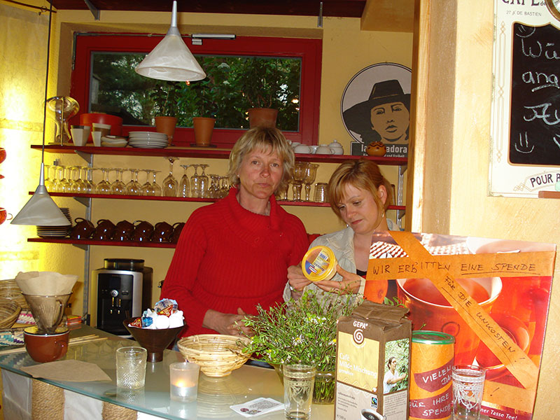Juni 2008. Weltladenmitarbeiterin beim Kaffeeparcours.