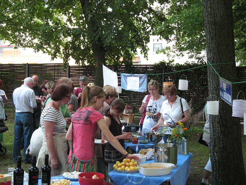 August 2012. Unsere Gäste am Imbissstand beim Sommerkino.
