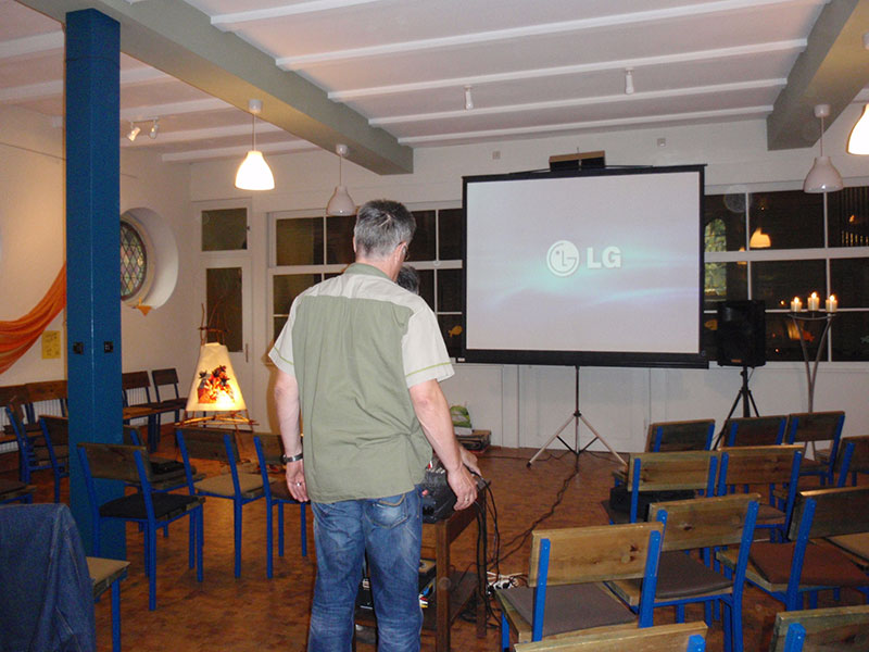 Sommerfilmabende 2009. Die Technik wird installiert und getestet.