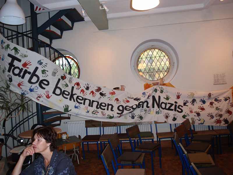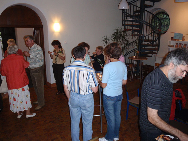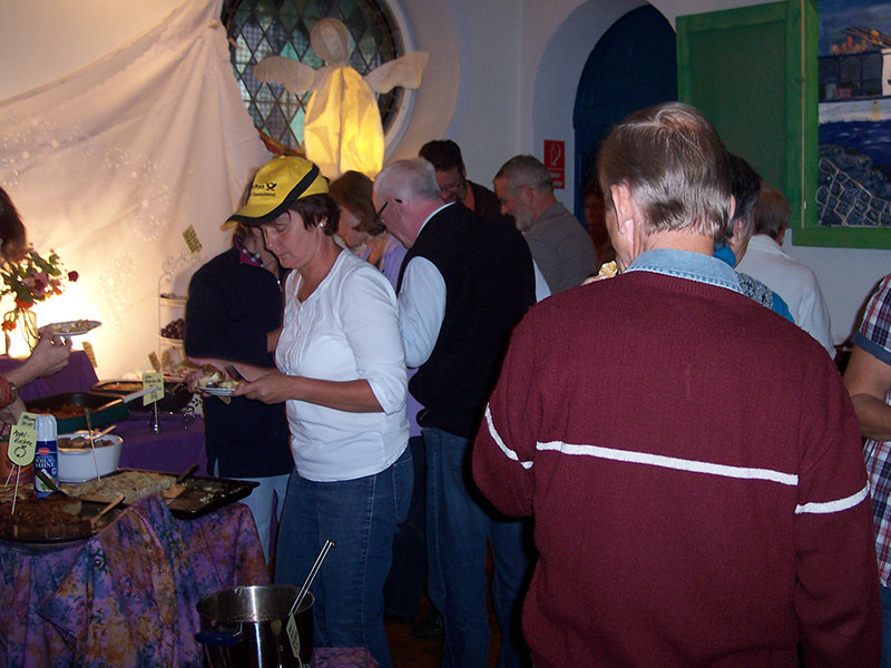 Sommerfilmabende 2011. Imbiss in der Kirche. Die Postbotin ist auch da.