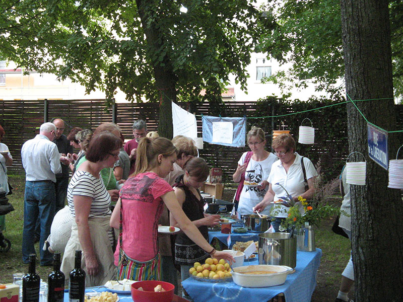 Sommerfilmabende 2010. Unser Imbissangebot dieses Mal im Garten hinter dem Laden.