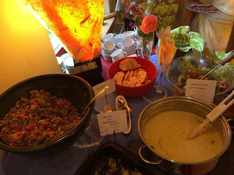 Sommerfilmabende 2014. Imbissangebot. Im Weltladen, da draußen Regen drohte.