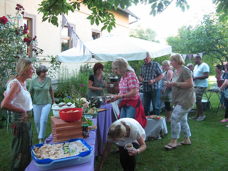 10 Jahre Sommerkino 2017. Imbiss im Garten hinter dem Weltladen.