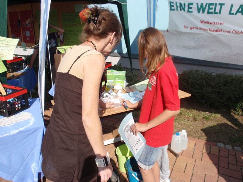 April 2007. Wir beim Fairhandelsprojekt in einer Weißwasseraner Schule.