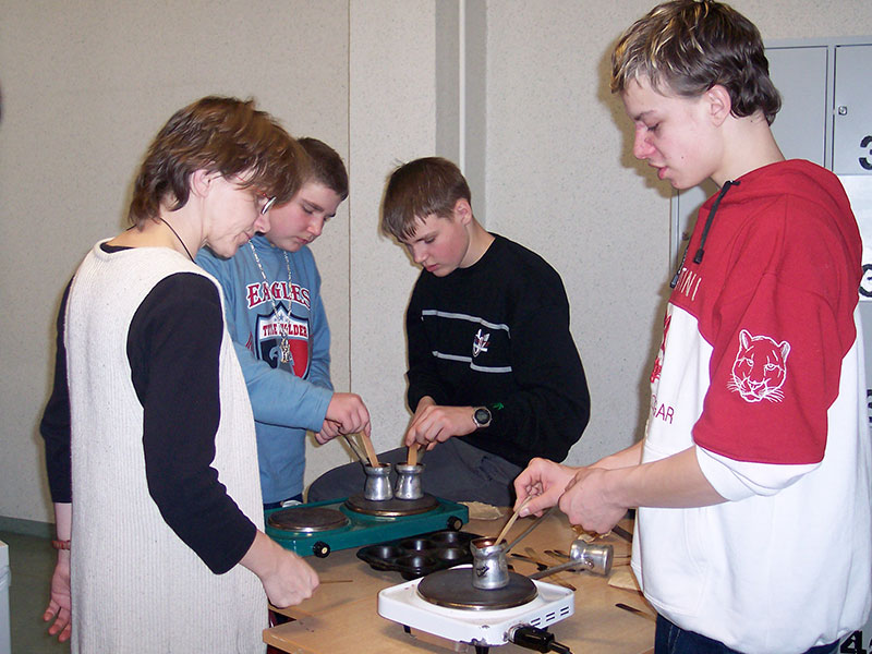 Januar 2005. Zu Gast mit unserem Kaffeeparcours in einer Schule.
