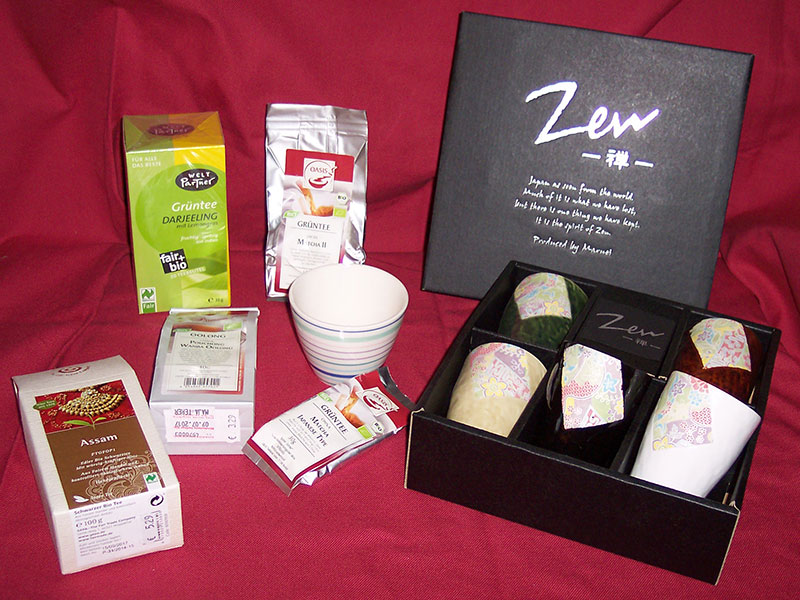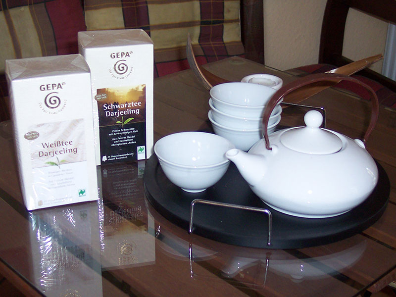 Teeservice im japanischen Stil und Fairtrade-Tees.