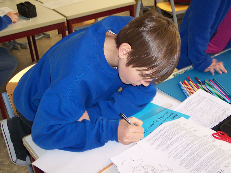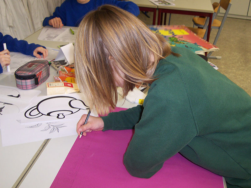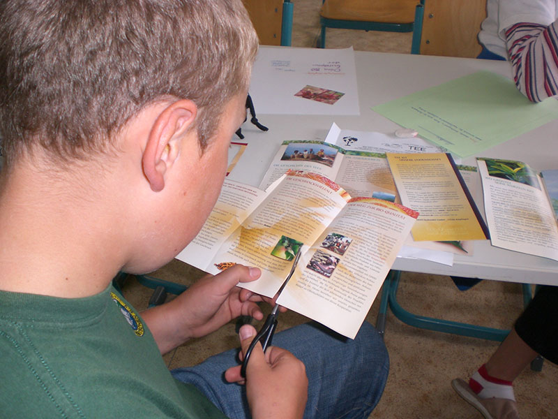 Teeprojekt an einer Schule. Beim Zuschneiden von Bildmaterial.